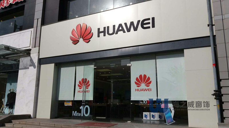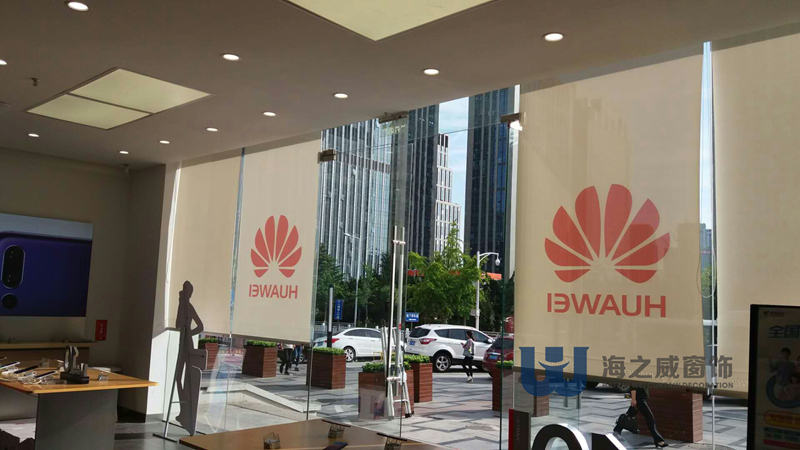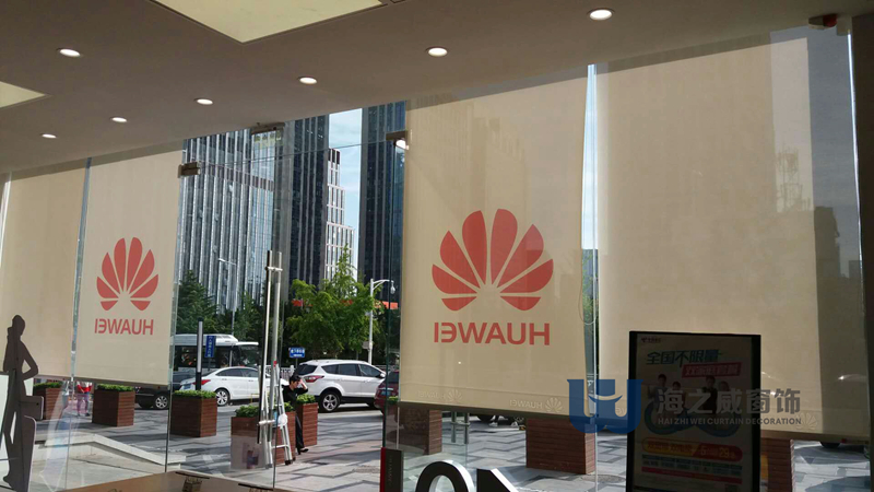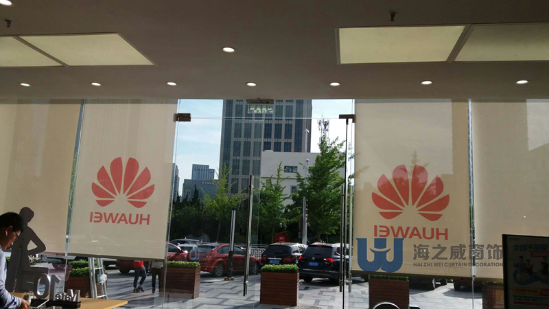 青岛企业定制卷帘 图案LOGO定制卷帘 华为LOGO 青岛海之威窗饰 定制热线0532-83650666 免费上门送样 测量 设计